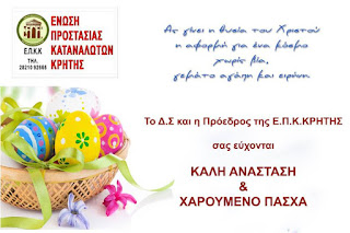 Η ΕΝΩΣΗ ΚΑΤΑΝΑΛΩΤΩΝ ΡΟΔΟΠΗΣ ΣΑΣ ΕΥΧΕΤΑΙ ΚΑΛΟ ΠΑΣΧΑ ΚΑΙ ΚΑΛΗ ΑΝΑΣΤΑΣΗ!